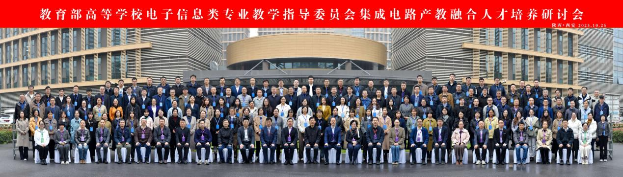 2025年10月24日至26日,微电子现代产业学院副院长黄玲与电子信息系主任陈晓雷赴西安参加“教育部高等学校电子信息类专业教学指导委员会集成电路产教融合人才培养研讨会”。本次会议由教育部高等学校电子信息类专业教学指导委员会主办,西安电子科技大学、教育部集成电路设计与集成系统专业虚拟教研室及机械工业出版社有限公司共同承办,吸引了来自85所高校和企事业单位的200余位代表参会。